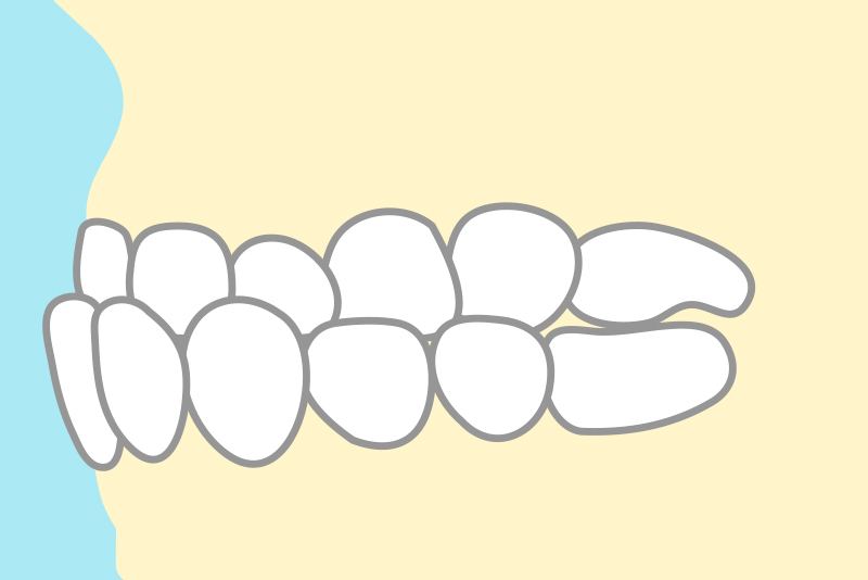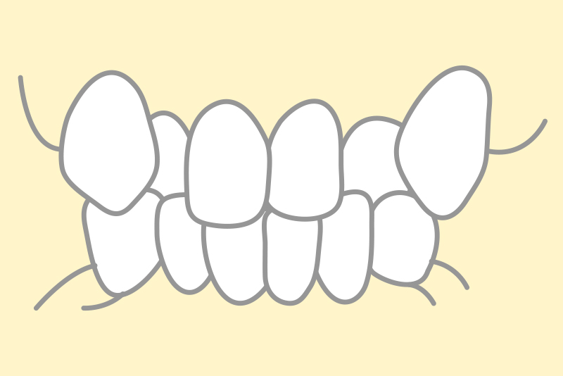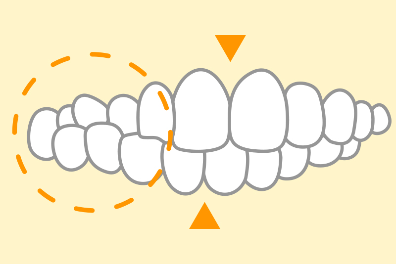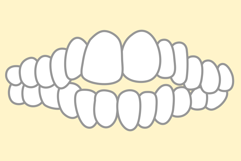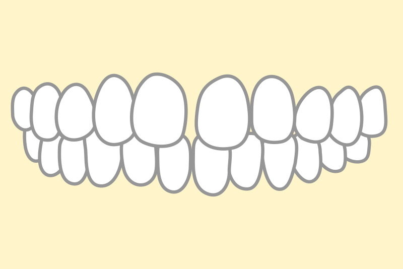 歯と顎の大きさのバランスが合わず、歯がデコボコに並んでいる状態です。歯ブラシが届きにくく、むし歯や歯肉炎になりやすい状態になります。見た目のコンプレックスにつながることも少なくありません。