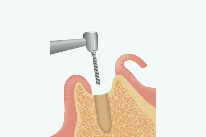 数ヶ月かけてインプラント体と骨がしっかり結合したことを確認した上で、歯ぐきを小さく開いてインプラント体の上部を露出させます。