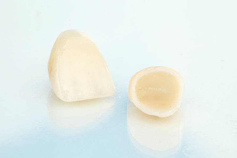 | デメリット | 見た目が目立ちやすく、経年により金属が酸化して歯ぐきが黒ずんで見えることがあります。接着剤の劣化により、二次むし歯が起こることもあります。 | 経年による変色が起こりやすく、金属に比べて強度が劣るため、欠けたり割れたりすることがあります。 |